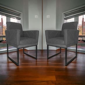 Kit 02 Poltronas Klara Base Ferro Preto Suede - Estopar - Cinza