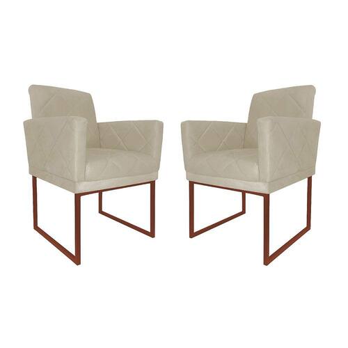 Kit 02 Poltronas Klara Para Sala Base Ferro Bronze Suede - Estopar - Bege Claro
