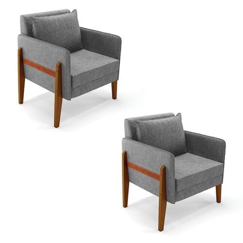 Ter uma casa com móveis de qualidade e que dure por anos é o sonho de qualquer pessoa. Afinal, quem não gosta de estar em um ambiente que transmita a sensação de acolhimento não é mesmo? Com a poltrona Lana, você consegue levar aconchego e leveza a qualquer ambiente. A estrutura é confeccionada em madeira de eucalipto proveniente de reflorestamento, suportando em média até 120 Kg, garantindo uma maior resistência e durabilidade ao produto, revestida em tecido Linho no tom Grafite, o estofamento do assento e encosto é composto de espuma D-23, na lateral vem com uma tira de corano que dá um charme todo especial, e olha só que legal, a almofada solta dá a opção de mudar a cara do ambiente quando quiser. Então, que tal aproveitar essa super novidade e levar o Kit 02 Poltronas? Aproveite!