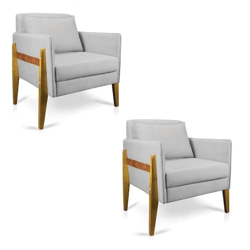 Kit 02 Poltronas Lana Suede Base De Madeira - D'rossi Cor Cinza