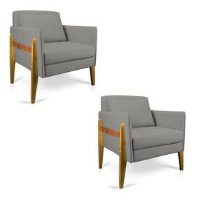 Kit 02 Poltronas Lana Suede Base De Madeira D`Rossi Grafite