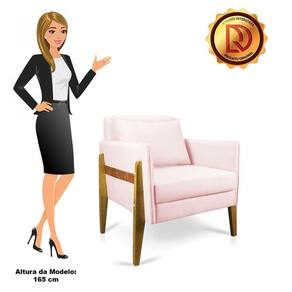 Kit 02 Poltronas Lana Suede Base De Madeira - D'rossi Cor Rosa Bebê
