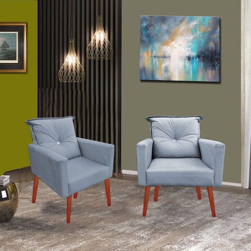 Kit 02 Poltronas Lara Decorativa Palito Luxo Tecido Grafitte - Grafite