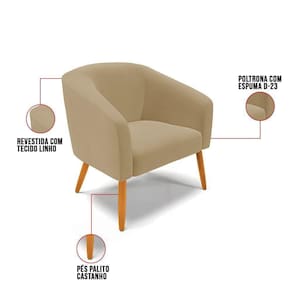 Kit 02 Poltronas Linho Pés Palitos Castanho Bege