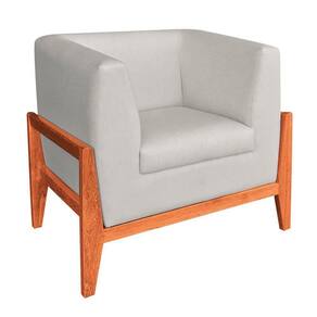 Kit 02 Poltronas Lucy Linho Bege A19 Base Madeira Castanho Drossi