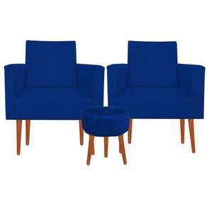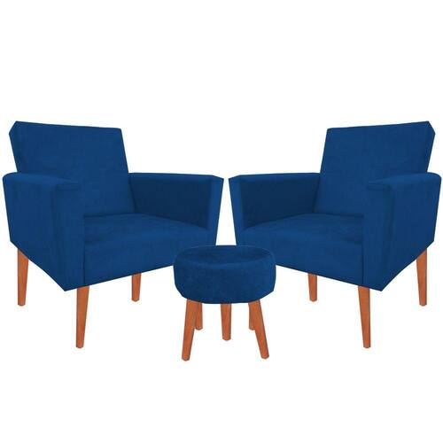 Kit 02 Poltronas Luxo Decorativas Nina E Puff Suede Marinho - Azul