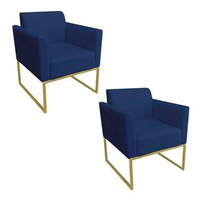 Kit 02 Poltronas Marisa Azul Marinho Base Dourado - Blush