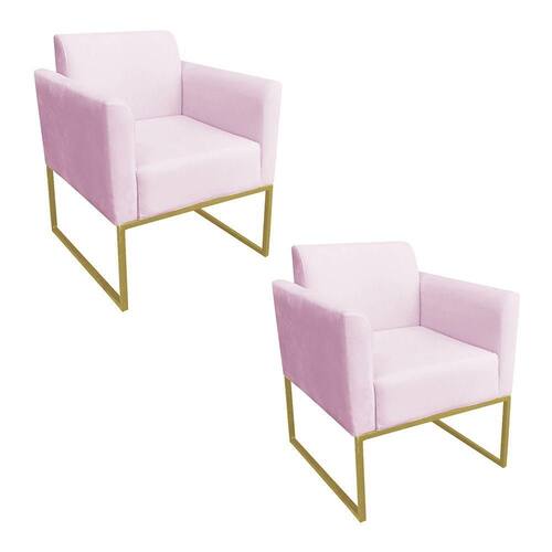 Kit 02 Poltronas Marisa Suede Base Metálica Dourado DRossi