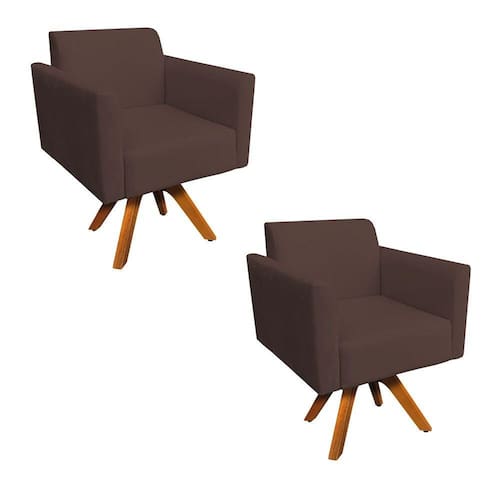 Kit 02 Poltronas Giratória Marisa Suede Base Madeira MM30 D'Rossi