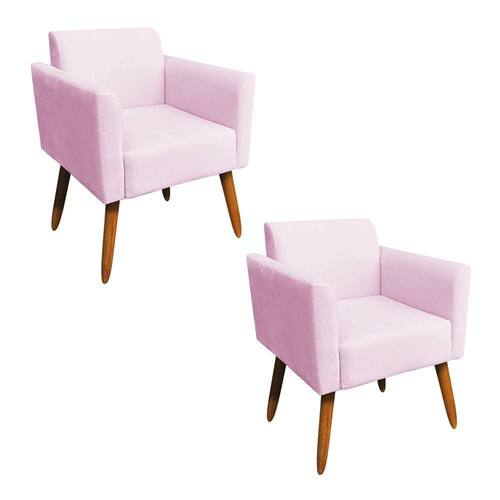 Kit 02 Poltronas Marisa Suede Pés Palito Castanho D'Rossi
