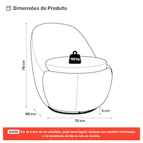** POR SE TRATAR DE UM ESTOFADO, AS MEDIDAS PODEM SOFRER UMA VARIAÇÃO DE ATÉ 3 CM.