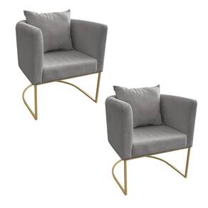 Kit 02 Poltronas Paola Linho Base Metálica Dourado - D'Rossi