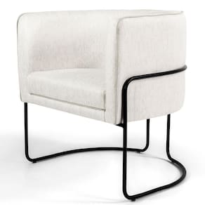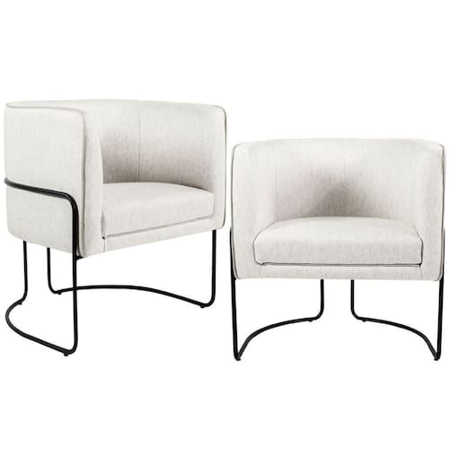 Kit 02 Poltronas Decorativas Fixa Base De Aço Preto Betina D02 Linho Creme A-48 - Lyam Decor