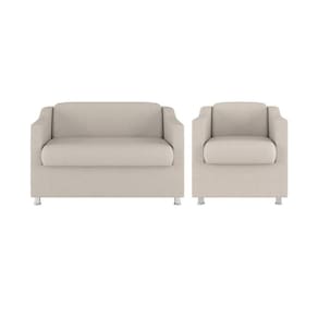 Kit 02 Poltronas Reforçada Clinica + Namoradeira Suede Tilla Cor:bege