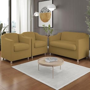 Kit 02 Poltronas Reforçada Clinica + Namoradeira Suede Tilla Cor:capuccino