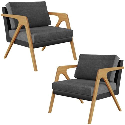 O Kit 02 Poltronas Decorativas Sala Estar Pietra L02 Couríssimo Preto Linho Cinza Escuro - Lyam Decor se sobressai em qualquer ambiente, permite diversas combinações harmônicas e ainda proporciona muito aconchego para sua decoração! O link da estrutura de madeira com a composição de revestimentos em linho e couríssimo, somados ao seu design geométrico garantem extrema originalidade, além de expressar toda a elegância que ele possui.