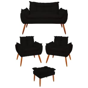 Você receberá 3 volumes, ou seja, duas Poltronas, uma Namoradeira e um Puff, todos do modelo Opala.