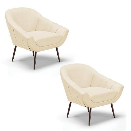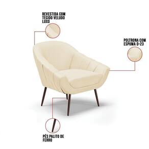 A poltrona Giovana é uma peça indispensável para momentos de descanso depois de um dia longo de trabalho. E não há nada melhor que poder relaxar em um móvel de extremo conforto não é mesmo! Afinal ela dará aquele toque de perfeição ao seu ambiente. Conta com uma estrutura reforçada em madeira eucalipto que oferece alta resistência e qualidade ao móvel. Produzida com Pés Palito de Ferro que suportam até 120 kg, seu estofamento é com espuma de densidade D-23, revestido em tecido Veludo no tom Off White Luxo que contribui para que o assento fique firme por mais tempo. Sua durabilidade e conforto é seu diferencial. Ter uma já é ótimo, agora, ter duas é maravilhoso! Garanta já o seu Kit.]