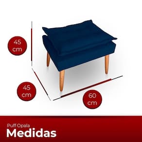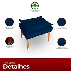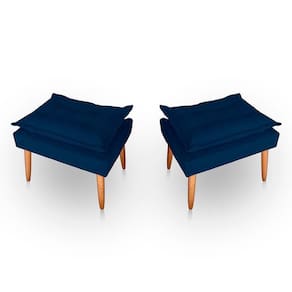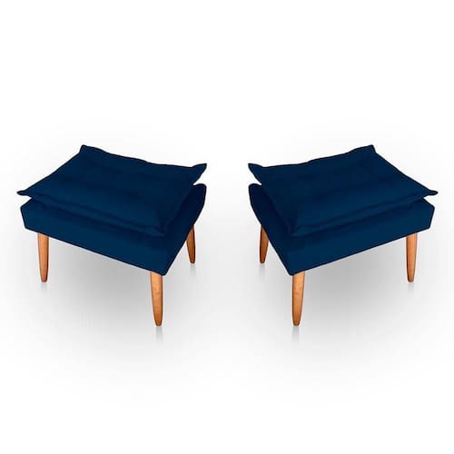 Kit 02 Puff Para Sala E Quarto Madeira Decorativo Opala Suede Cor Azul Marinho