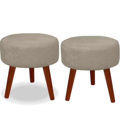 Kit 02 Puff Redondo Decorativo Panqueta De Apoiar Os Pés Suede Bege