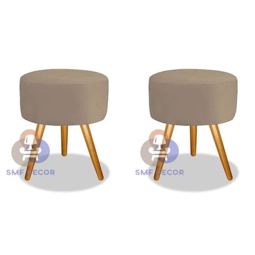 kit 02 Puff Redondo Pés Palito Capuccino - Puff Decorativo Redondo - Conforto e Estilo para o Seu Ambiente