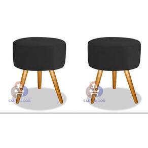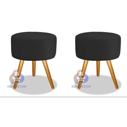 kit 02 Puff Redondo Pés Palito Preto - Puff Decorativo Redondo - Conforto e Estilo para o Seu Ambiente