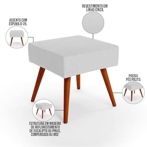O Kit 02 Puffs Banqueta Decorativa Com Pés Palito Lívia W01 Linho Cinza - Lyam Decor é ideal para você que busca por elegância e praticidade em sua decoração! Seus pés delicados transmitem suavidade, harmonizando com o assento estofado, que por sua vez é revestido em Linho, tecido de excelente qualidade.