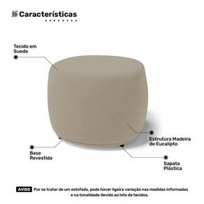 Kit 02 Puffs Decorativos Living Aisha Orgânico Redondo Suede Bege - Desk Design