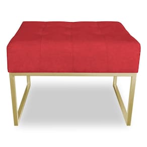 Kit 02 Puffs Lisa Suede Base Metálica Industrial Dourado - Pallazio Cor Vermelho