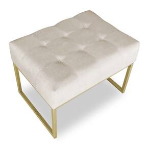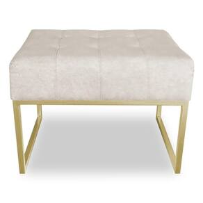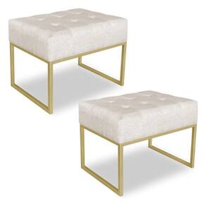 Kit 02 Puffs Lisa Suede Bege Base Metálica Industrial Dourado - Pallazio