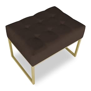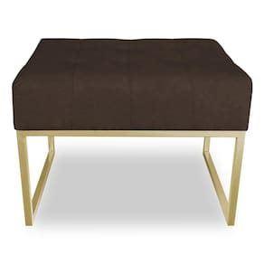 Kit 02 Puffs Lisa Suede Marrom Base Metálica Industrial Dourado - Pallazio