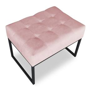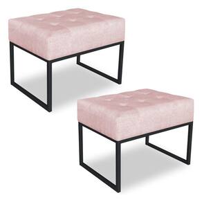 Kit 02 Puffs Lisa Suede Rosa Bebê Base Metálica Industrial Preto - Pallazio
