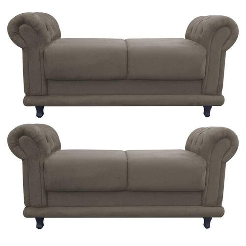 Kit 02 Recamier Barcelona Namoradeira Calçadeira Suede Drossi -marrom Rato