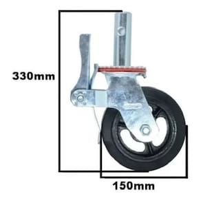 Rodizio para andaime colson com freio glef62bfr- nbr 6494 e nr 18características- antirrisco- base em aço- rodizio de borracha- roda em ferro fundido- com freio para travamentocapacidade- carga máxima por rodízio: 225 kg- o kit com 4 rodas suporta até 900 kg- para movimento, subtraia 30% da capacidade- não aconselhável movimentação em áreas irregulares com muito pesodados técnicoseixo: 32mmaltura do rodízio: 33cmdiâmetro da roda: 15cmlargura da roda: 4,5cmcomposição: borracha e ferro Marca: Não Informado