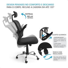 - Material da Cadeira: Material do Assento em Tela Mesh respirável e resistente