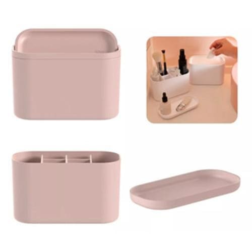 Kit Organizador de Pincel Maquiagens Com Divisórias + Lixeira Basculante de Bancada + Bandeja Decorativa Porta Anéis Objetos