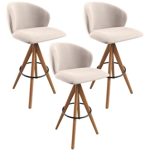 Color: Bege | ColorFamily: Bege | ColorSimple: Bege | ColorSupplier: Bege | Material: Estrutura em Madeira, Revestimento em Suede e espuma | MaterialFamily: Madeira, Suede e espuma | Model: Mia | OriginCountry: Nacional | OriginState: PR | ProductContents: 03 Banquetas | ProductHeight: 190 cm | ProductInstructions: Produto para uso em ambiente interno, nao devendo ficar exposto ao sol, calor e umidade excessivos. | ProductLength: 49 cm | ProductWarranty: 90 dias após o recebimento do produto | ProductWeight: 30 kg | ProductWidth: 52 cm | SizeDescription: Altura: 190 cm x Largura: 52 cm x Profundidade: 49 cm | SupplierSimpleName: Kit 03 Banquetas Alta Bar Cozinha Sala de Jantar Bar Mia L02 Suede Bege - Lyam Decor