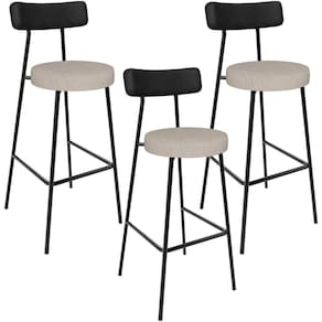 Amplamente moderna, dispondo de muito realce e design singular, o Kit 03 Banquetas Alta Bar Cozinha Sala De Jantar Em Aço Milão L02 Couríssimo Preto Linho Bege - Lyam Decor vem com a personalidade e elegância que sua decoração merece! Estruturada em aço carbono, contrasta lindamente com o encosto e assento estofados, cabe mencionar ainda o revestimento do seu encosto em Couríssimo e do assento em Linho, é confeccionada por materiais de excelente qualidade, extremamente resistentes e aconchegantes.