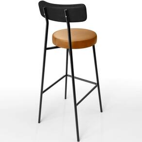 Revestimento do encosto em Couríssimo na cor Preto e assento revestido em Couríssimo na cor Whisky, com acabamento semi brilho.