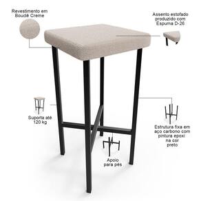 Material: Estrutura em Aço carbono, Revestimento em Bouclê e espuma | ProductContents: 03 Banquetas | ProductLength: 35 cm | ProductInstructions: Produto para uso em ambiente interno, nao devendo ficar exposto ao sol, calor e umidade excessivos. | SizeDescription: Altura: 146 cm x Largura 35 cm x Profundidade: 35 cm | OriginState: PR | ProductWidth: 35 cm | ColorFamily: Creme | ColorSupplier: Creme | ProductWeight: 15 kg | Color: Creme | ProductHeight: 146 cm | ProductWarranty: 90 dias após o recebimento do produto | OriginCountry: Nacional | MaterialFamily: Aço carbono e espuma | ColorSimple: Creme | Model: Stella | SupplierSimpleName: Kit 03 Banquetas Alta Bar Cozinha Sala De Jantar Preto Stella L02 Bouclê Creme - Lyam Decor