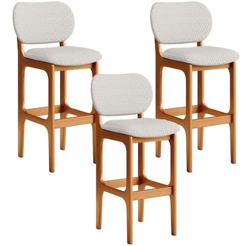 Amplamente sofisticada, o Kit 3 Banquetas Alta Para Cozinha Fixa Betta L02 Imbuia Bouclê Cru - Lyam Decor irá agregar ainda mais valor em sua decoração!! Sendo capaz de compor muito bem o ambiente, é produzida com materiais de excelente qualidade, a resistente estrutura em madeira de Taeda, na cor imbuia, conta com apoio para os pés (que garante maior segurança), além do assento e encosto estofados super confortáveis e convidativos, que são revestidos em tecido Bouclê, extremamente elegante.