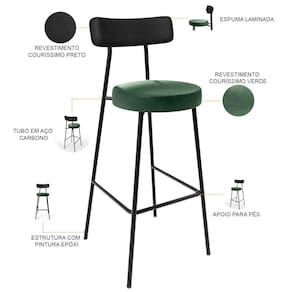Amplamente moderna, dispondo de muito realce e design singular, o Kit 03 Banquetas Alta Bar Cozinha Sala De Jantar Aço Milão L02 Couríssimo Preto Facto Verde Musgo - Lyam Decor vem com a personalidade e elegância que sua decoração merece! Estruturada em aço carbono, contrasta lindamente com o encosto e assento estofados, cabe mencionar ainda o revestimento do seu encosto em Couríssimo e do assento em Linho, é confeccionada por materiais de excelente qualidade, extremamente resistentes e aconchegantes.