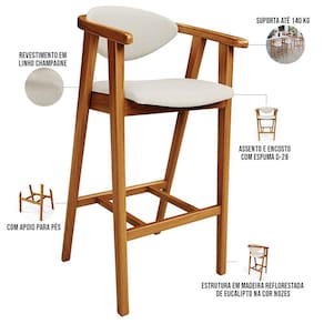 A melhor escolha para os momentos de confraternização no aconchego da sua casa, acaba de chegar! O Kit 03 Banquetas Alta Para Cozinha Sala de Jantar Fixa Cecília L02 Linho Champagne - Lyam vem com a personalidade e elegância que sua decoração merece! É ideal desde refeições rápidas, até um Happy Hour com os amigos, família. Seu design único valoriza o ambiente, sem deixar pra trás a beleza e qualidade! Para deixar a sua área gourmet mais aconchegante, ela possui assento e encosto estofados, confeccionados com materiais de excelente qualidade, e extremamente resistentes.