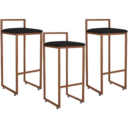 O seu sonho é ter uma cozinha integrada? Uma banqueta pode ser fator determinante para ajudar nesta tarefa, principalmente se você contar com o Kit 03 Banquetas Alta Para Cozinha Sala De Jantar Hanna L02 Bronze Corano Preto - Lyam Decor.
