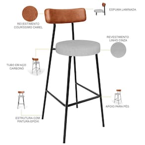 Amplamente moderna, dispondo de muito realce e design singular, o Kit 03 Banquetas Alta Bar Cozinha Sala De Jantar Aço Milão L02 Couríssimo Camel Linho Cinza - Lyam Decor vem com a personalidade e elegância que sua decoração merece! Estruturada em aço carbono, contrasta lindamente com o encosto e assento estofados, cabe mencionar ainda o revestimento do seu encosto em Couríssimo e do assento em Linho, é confeccionada por materiais de excelente qualidade, extremamente resistentes e aconchegantes.