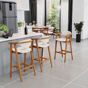 A melhor escolha para os momentos de confraternização no aconchego da sua casa, acaba de chegar! O Kit 03 Banquetas Altas Cecília vem com a personalidade e elegância que sua decoração merece! É ideal desde refeições rápidas, até um Happy Hour com os amigos, família. Seu design único valoriza o ambiente, sem deixar pra trás a beleza e qualidade! Para deixar a sua área gourmet mais aconchegante, ela possui assento e encosto estofados, confeccionados com materiais de excelente qualidade, e extremamente resistentes. Possui altura ideal, garantindo o encaixe perfeito no ambiente, otimizando seu espaço e promovendo máximo conforto. Pode ser usada em bancada, cozinha americana, home bar, ou área gourmet! As possibilidades são infinitas e as combinações ficarão extremamente elegantes. Adquira já a sua!