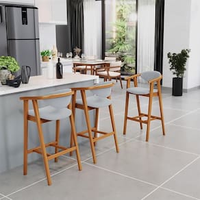 A melhor escolha para os momentos de confraternização no aconchego da sua casa, acaba de chegar! O Kit 03 Banquetas Altas Cecília vem com a personalidade e elegância que sua decoração merece! É ideal desde refeições rápidas, até um Happy Hour com os amigos, família. Seu design único valoriza o ambiente, sem deixar pra trás a beleza e qualidade! Para deixar a sua área gourmet mais aconchegante, ela possui assento e encosto estofados, confeccionados com materiais de excelente qualidade, e extremamente resistentes.