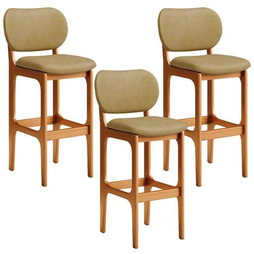 Amplamente sofisticada, o Kit 03 Banquetas Alta Bar Cozinha Sala Jantar Fixa Betta L02 - Lyam Decor irá agregar ainda mais valor em sua decoração!! Sendo capaz de compor muito bem o ambiente, é produzida com materiais de excelente qualidade, a resistente estrutura em madeira de Taeda, na cor imbuia, conta com apoio para os pés (que garante maior segurança), além do assento e encosto estofados super confortáveis e convidativos, que são revestidos em couríssimo, extremamente elegante. Podendo ser disposta em bancada, cozinha americana, espaço gourmet ou home bar, as possibilidades de combinação são infinitas, o que a torna perfeita para receber família e amigos sempre de forma agradável e aconchegante, sem perder a sobriedade e requinte que possui. Você e seu lar merecem, adquira já a sua!!