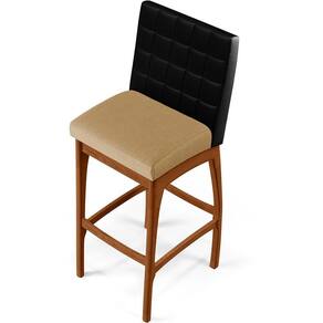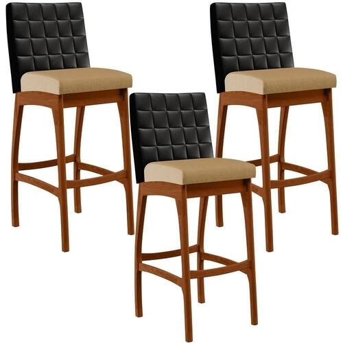 ndo muita excelência, o Kit 03 Banquetas Altas Sala De Jantar Fixa Mila B04 Couríssimo Preto Linho Bege Escuro - Lyam Decor é o complemento que faltava para deixar sua casa ainda mais extraordinária. Seu encosto com costura em padrão quadriculado e assento estofados, centralizam em si uma graciosidade estonteante, sem perder todo o conforto. A estrutura em madeira, na cor nozes, também é digna de notoriedade, por imprimir bastante personalidade a sua decoração. Vale ressaltar ainda, o apoio para os pés que garante maior segurança à banqueta.