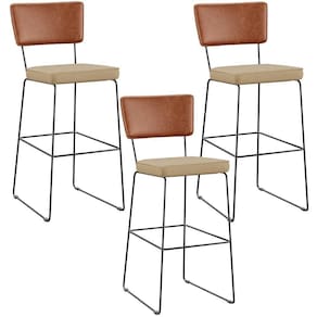 O espetáculo que é o Kit 03 Banquetas Altas Sala Jantar Fixa Allana L02 Couríssimo Camel Linho Bege Escuro - Lyam Decor vem para agregar ainda mais valor na decoração da sua casa. Sua estrutura em aço remete-nos ao estilo industrial que surgiu em Nova York no século XX, já o assento e encosto estofados trazem equilíbrio e conforto criando a combinação perfeita para o ambiente.
